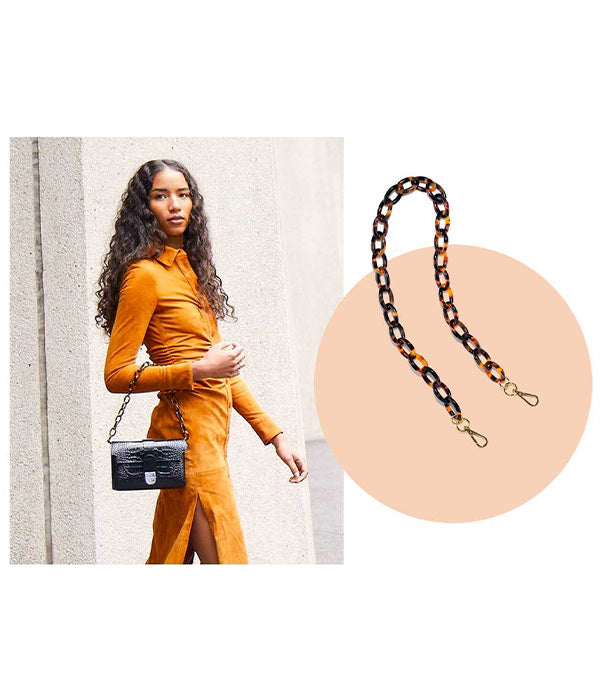 Our SENREVE x Machete Femme Link Chain has the sophisticated look of a tortoise shell but is made of cellulose acetate, a natural and renewable material, and an eco-friendly alternative to petroleum-based products. It’s a new kind of luxury that's here to stay: craftsmanship, sustainable materials and a design to wear forever, time and time again.