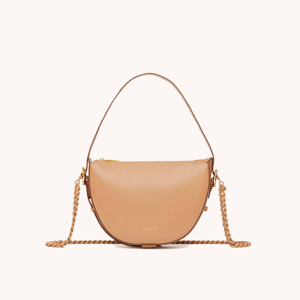 Inspired by an exploration of different shapes and structures, we took the full-size Fortuna and created this ultra-chic mini version. Crafted from supple Italian leather, this everyday style features two internal slots for your cards, plus elegant Cavalla buckles on the adjustable strap. Carry it by shoulder or top handle, or swap in a metal chain strap to wear yours crossbody.