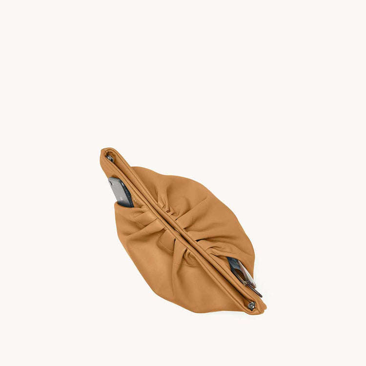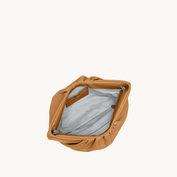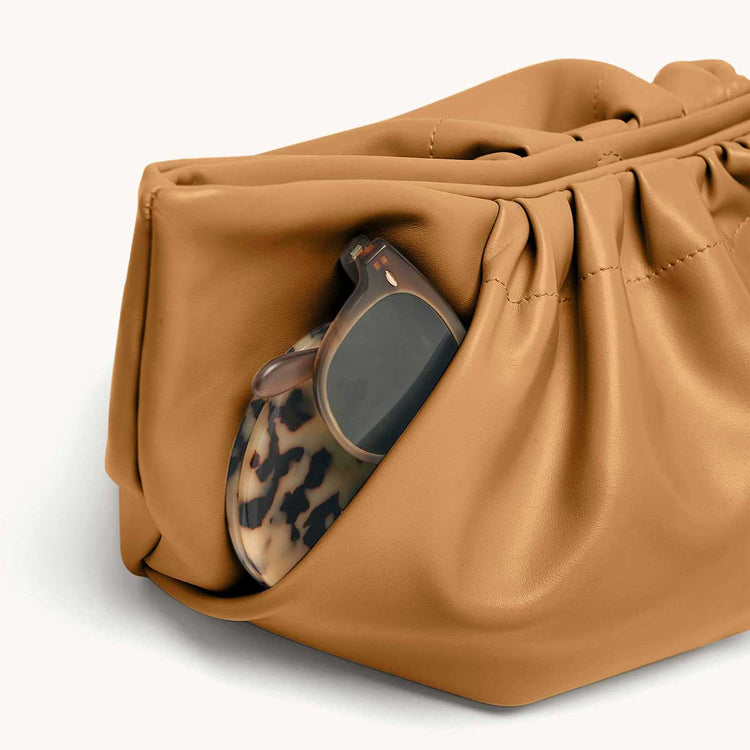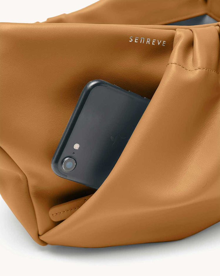 The Cornetti Bag is our take on the on-trend slouchy pouch look, built with extra form and function in mind. The Cornetti name translates literally to “little horn” and refers to the Italian version of the croissant, which speaks perfectly to the shape of this all new style. Its unique pleating detail on the outside allows for built in exterior pockets (one zipper and one slip pocket), and in true SENREVE style, we’ve decked out the inside with even more organization (a zipper pocket, two card slots, and a main compartment). Available in smooth Sereno Leather or sustainable vegan Cactus Leather. The Cornetti Bag comes with the Beveled Shoulder Chain.