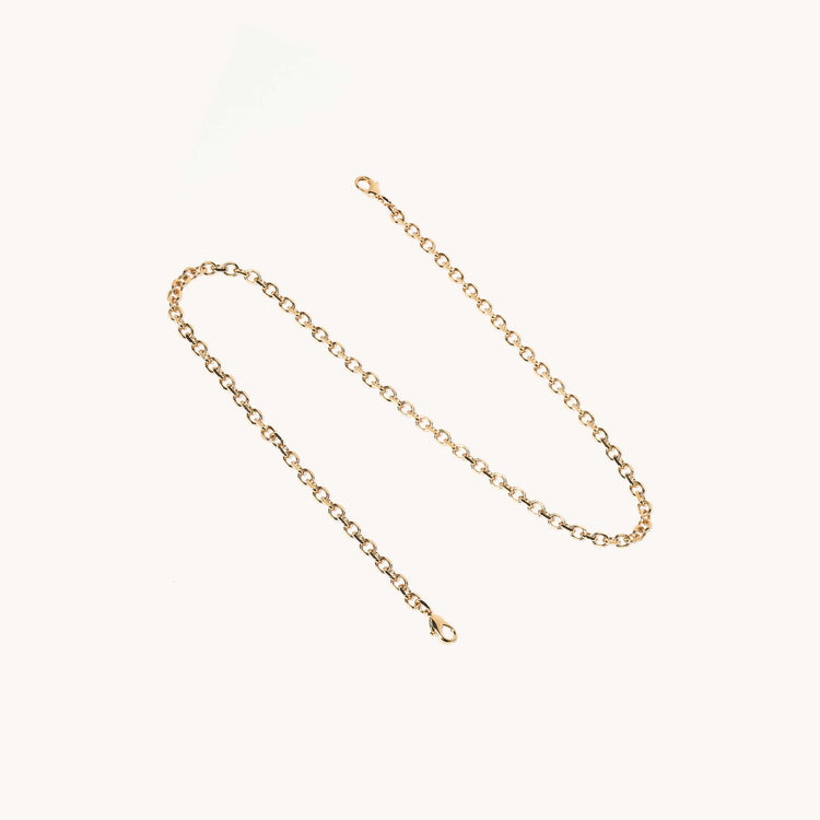 The Beveled Shoulder Chain can turn any small bag into a shoulder bag with its lobster claw closures on both ends for an upgraded look. It can even be worn as a necklace.